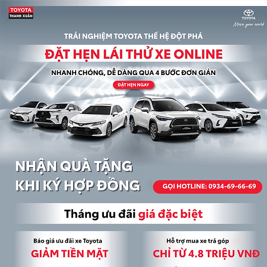 ​Lái thử xe dễ dàng và hoàn toàn miễn phí. Trải nghiệm ngay thế hệ xe Toyota đột phá. Đăng ký ngay
