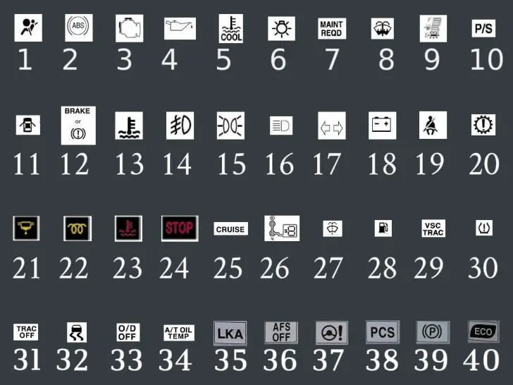 ĐÈN CẢNH BÁO TRÊN TÁP LÔ XE TOYOTA, Để vận hành xe an toàn bạn cần nắm rõ ý nghĩa